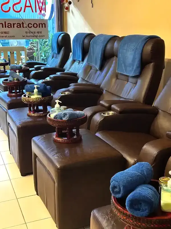 Foot Massage is performed on the 1st floor, in an air-conditioned room with 7 special chairs with adjustable footrests and backrests.